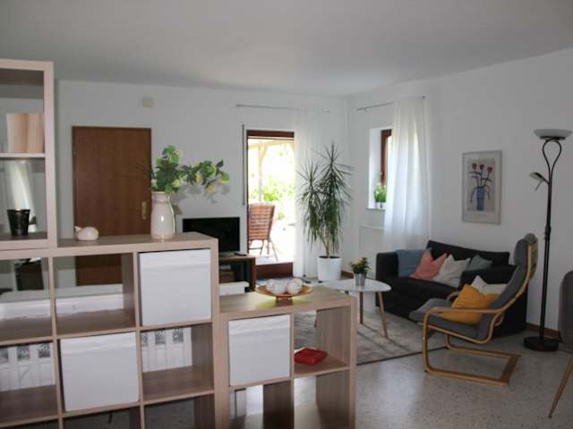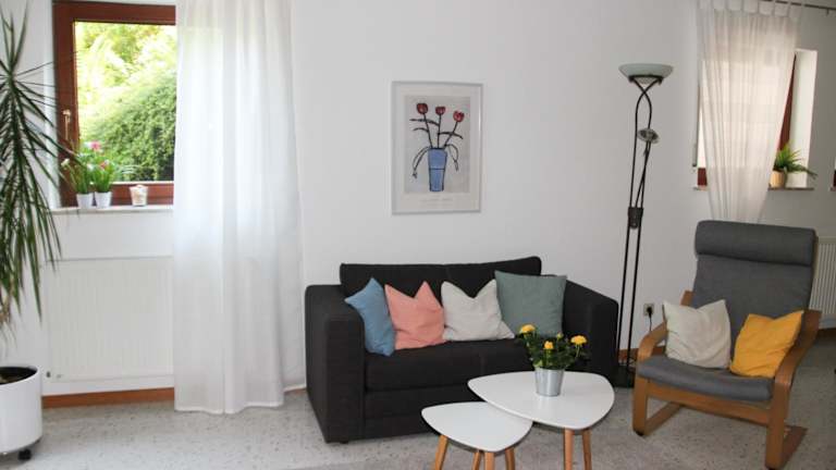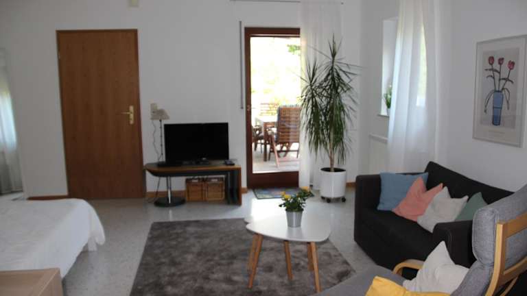 Die Ferienwohnung verfügt über 1 Schlafzimmer und 1 Badezimmer sowie einen Essbereich und eine voll ausgestattete Küche. Zur Ausstattung gehören Bettwäsche, Handtücher und ein Flachbild-TV. Die Terrasse bietet einen schönen Blick auf den Garten.
