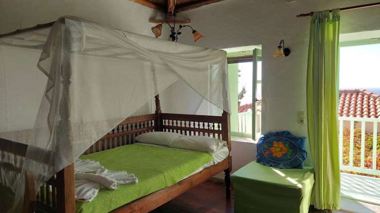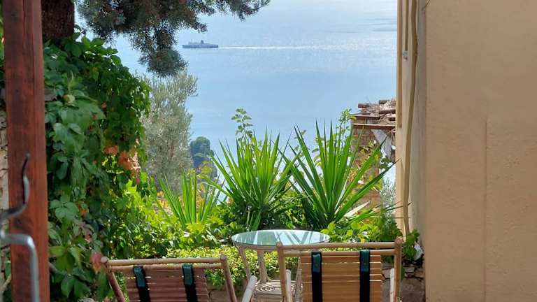 Elma's Houses - Green House Yanna bietet eine heimelige Atmosphäre mit einem Garten und einem Balkon. Die Unterkunft ist mit Klimaanlage ausgestattet und ideal für einen Aufenthalt mit Blick auf das Meer.