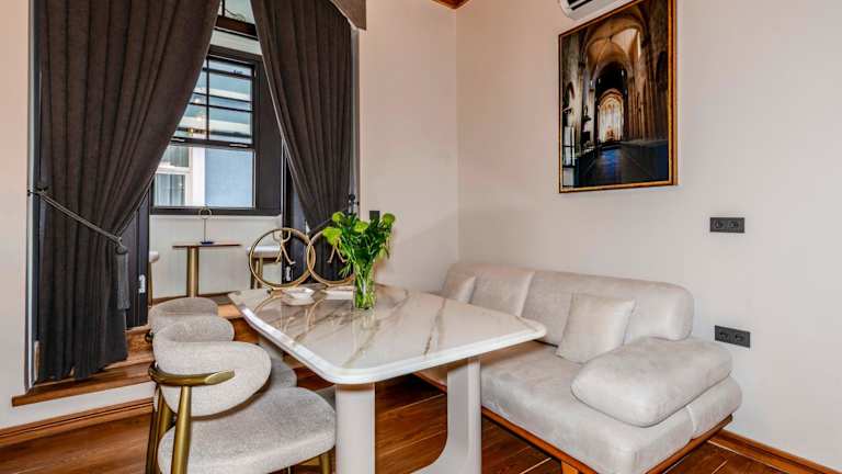 Das Elmira Pera Hotel & - Special Class befindet sich im Zentrum von Istanbul, in der Nähe des Galataturms und der İstiklal Caddesi. Zu den Entfernungen gehören: ca. 800 m zum Strand, ca. 20 m zum Stadtzentrum, und ca. 350 m zum Bahnhof. Der U-Bahnhof Taksim ist etwa 1,2 km und der Flughafen Istanbul ca. 36 km entfernt.