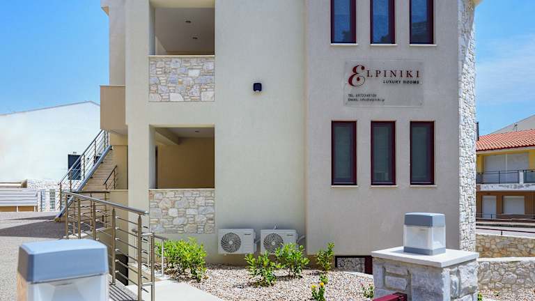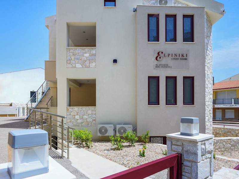 Elpiniki Luxury Rooms bietet eine Terrasse und komfortable Wohneinheiten, die über einen Balkon und kostenloses WLAN verfügen. Die Unterkunft ist klimatisiert und bietet zahlreiche Annehmlichkeiten, darunter eine voll ausgestattete Küchenzeile.