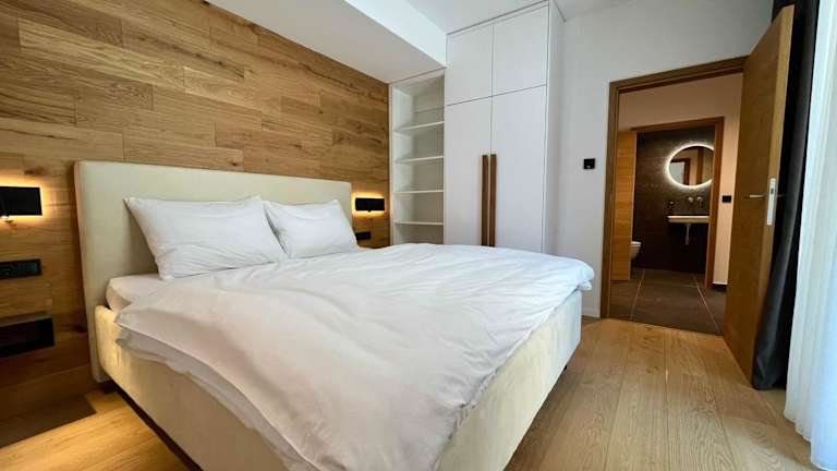 Die Apartments sind ausgestattet mit einem Flachbild-TV, einem eigenen Badezimmer mit Dusche und Haartrockner sowie einer voll ausgestatteten Küche. Diese bietet einen Kühlschrank, Geschirrspüler und Mikrowelle. Einige Wohneinheiten verfügen über eine Terrasse oder einen Balkon mit herrlichem Berg- oder Gartenblick.