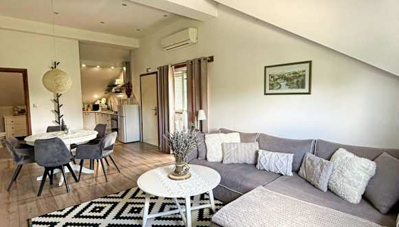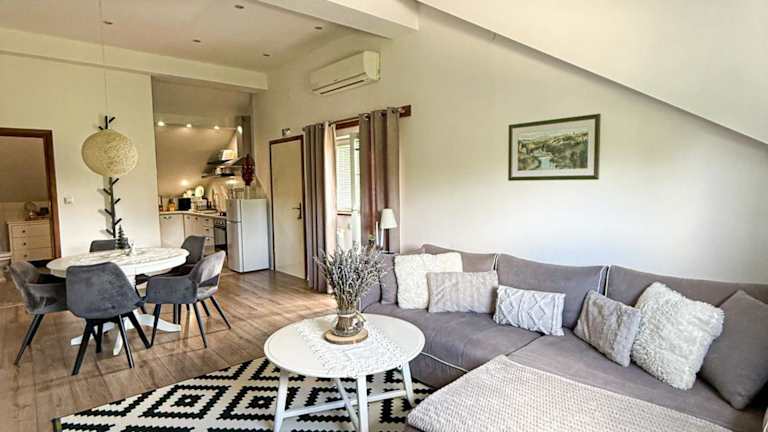 Die Ferienwohnung ist mit zwei Schlafzimmern, einem Wohnzimmer und einer voll ausgestatteten Küche ausgestattet. Zu den Küchenelementen zählen ein Kühlschrank und ein Wasserkocher. Das Badezimmer verfügt über eine Dusche und kostenlose Pflegeprodukte. Die Unterkunft stellt Handtücher und Bettwäsche bereit. Die Ferienwohnung ist klimatisiert und bietet zudem eine Sonnenterrasse sowie Gartenmöbel.