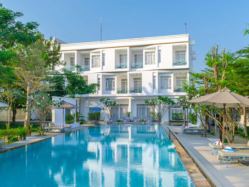 Das Elysium Suite bietet seinen Gästen eine entspannende Unterkunft abseits des Trubels von Siem Reap. Das freundliche Personal an der Rezeption ist rund um die Uhr verfügbar und hilft gerne bei Fragen oder Buchungen von Ausflügen. Das Hotel bietet verschiedene Annehmlichkeiten, darunter einen Garten, einen TV-Raum, eine Bibliothek und einen Wellnessbereich mit Whirlpool. Zudem besteht die Möglichkeit, Velos zu mieten, um die Umgebung zu erkunden. Das Haus besitzt zwei Poolanlagen, darunter einen Aussenpool und einen Kinderpool. Parkiermöglichkeiten sind sowohl in einer Garage als auch auf einem unbewachten Parkplatz vorhanden.