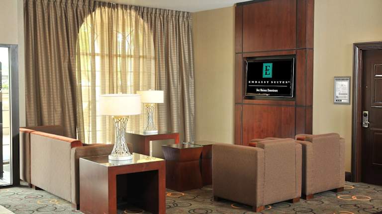 Das Embassy Suites by Hilton in Des Moines ist ein Suitehotel mit insgesamt 234 Suiten auf 8 Etagen. Eine Gepäckaufbewahrung, ein Safe, ein Geldautomat sowie ein Souvenirshop stehen den Gästen zur Verfügung. Das freundliche Personal an der Rezeption ist rund um die Uhr erreichbar und bietet Unterstützung bei Fragen. Die Unterkunft bietet zudem einen Indoor- und Outdoor-Pool sowie einen Whirlpool im Wellnessbereich.