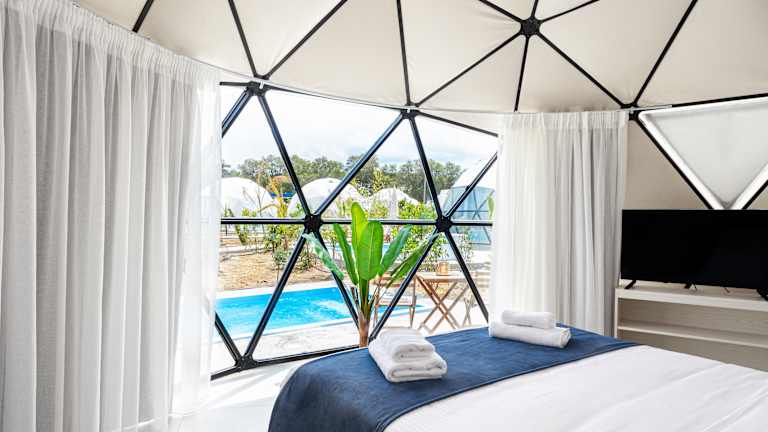 Emerald Oasis Glampotel, promises all the luxuries of a hotel in a unique layout and setting. For those wondering what glampotel means, it’s an experience that elevates traditional camping to an upgraded level of luxury, a unique combination of outdoor adventure and luxurious comfort. Glampotel redefines the camping experience with an emphasis on comfort and luxury and its ability to combine the uniqueness of being close to nature, enjoying the feeling of luxury accommodation. Glampotel appeal lies in its flexibility and the unique experiences that offers to a wide range of travelers, offering them the opportunity to reconnect with nature.