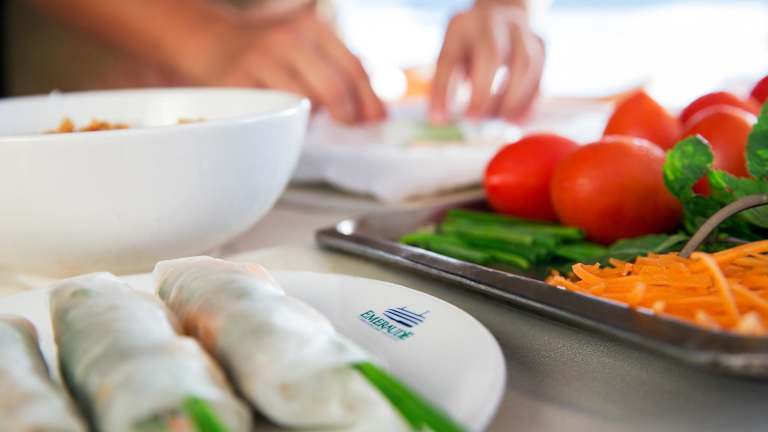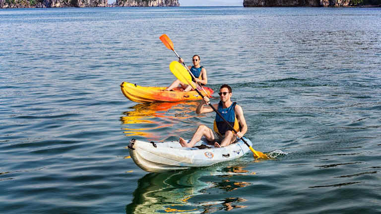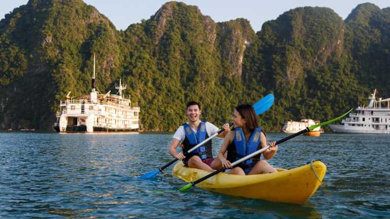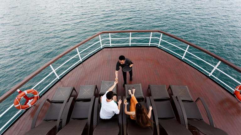 Zu den Freizeitaktivitäten auf dem Boot gehören Schwimmen, Kajakfahren im Meer sowie Yogakurse. Darüber hinaus können Gäste lernen, wie man vietnamesische Frühlingsrollen zubereitet. Entspannende Körpermassagen sind im Spa verfügbar.
