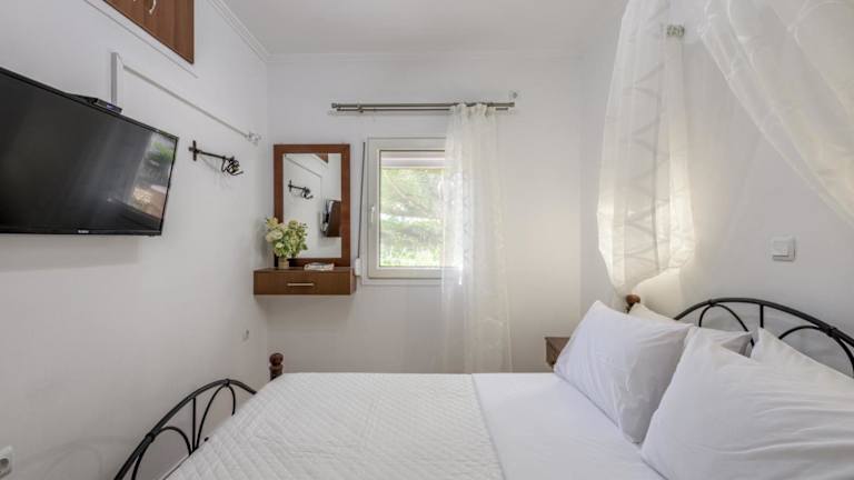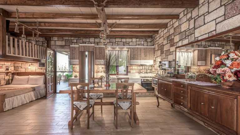 Die klimatisierten Wohneinheiten sind mit Fliesenböden ausgestattet und verfügen über ein eigenes Badezimmer. Zur Ausstattung gehören ein Flachbild-TV, ein Kleiderschrank, eine komplett eingerichtete Küche mit Kühlschrank, Ofen, Mikrowelle, Kaffeemaschine und Wasserkocher sowie eine Terrasse mit Bergblick.