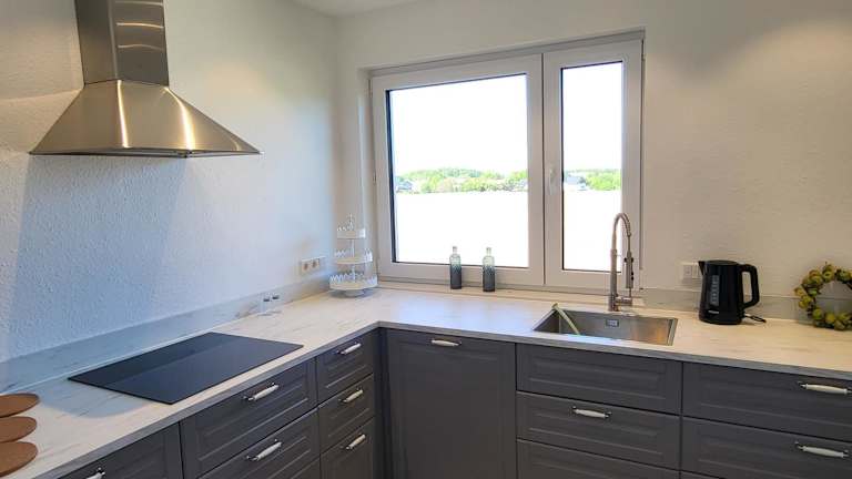 Die Ferienwohnung verfügt über drei Schlafzimmer und ist ausgestattet mit einer voll eingerichteten Küche, die einen Kühlschrank und einen Geschirrspüler umfasst. Ein Badezimmer mit Dusche und Haartrockner ist ebenfalls vorhanden. Handtücher und Bettwäsche werden bereitgestellt.