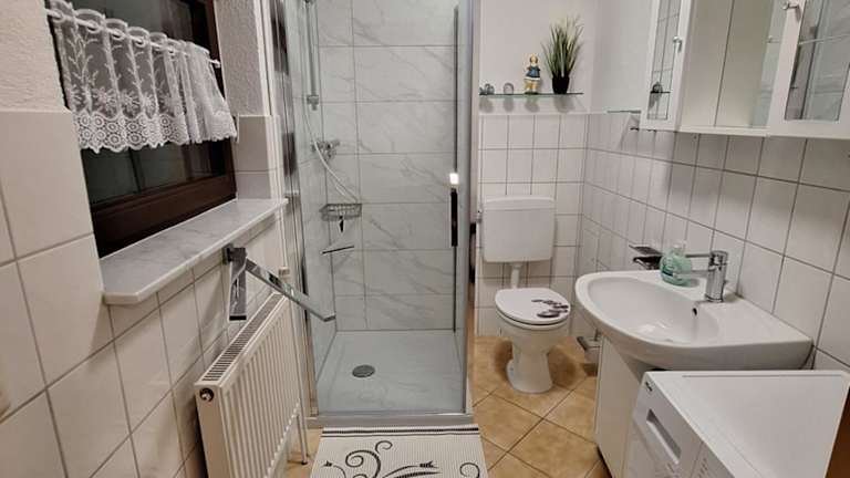 Die Ferienwohnung umfasst zwei Schlafzimmer, ein Wohnzimmer mit Flachbild-TV und eine gut ausgestattete Küche mit Kühlschrank und Geschirrspüler. Zudem gehört ein Badezimmer mit Dusche zur Ausstattung. Handtücher und Bettwäsche können gegen Aufpreis bereitgestellt werden.