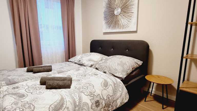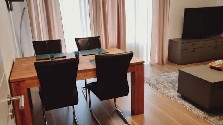 Die Ferienwohnung verfügt über 2 Schlafzimmer, ein Wohnzimmer mit einem Flachbild-TV sowie eine gut ausgestattete Küche, in der sich ein Kühlschrank und ein Geschirrspüler befinden. Das Badezimmer ist mit einer Badewanne ausgestattet. Handtücher und Bettwäsche werden bereitgestellt.