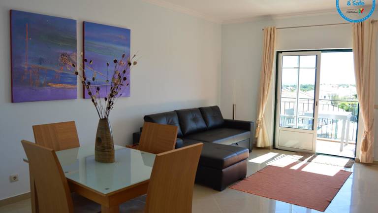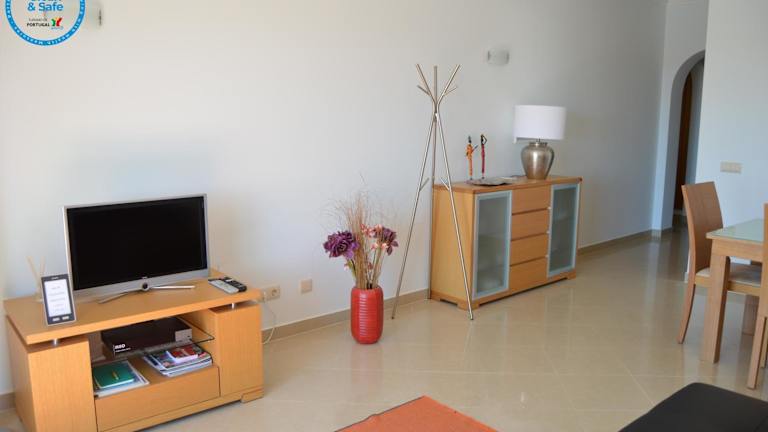 Das Encantador T1 praia Senhora da Rocha - Algarve bietet Übernachtungsmöglichkeiten in einer heimeligen Ferienwohnung, ausgestattet mit einem Aussenpool, Garten und Terrasse, ideal für entspannte Tage.