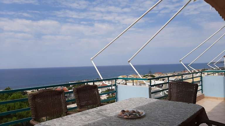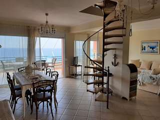 Die Ferienwohnung verfügt über drei Schlafzimmer und zwei Badezimmer. Zur Ausstattung gehören Bettwäsche, Handtücher, ein Flachbild-TV, ein Essbereich sowie eine voll ausgestattete Küche. Auf der Terrasse geniessen Gäste einen schönen Meerblick.