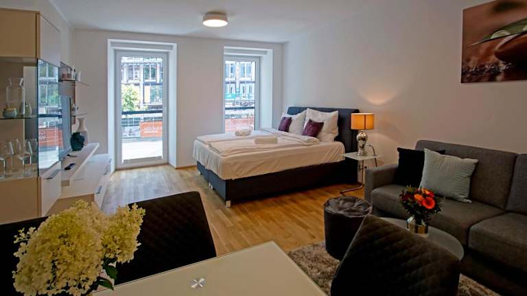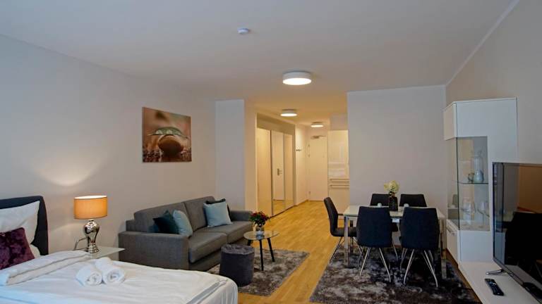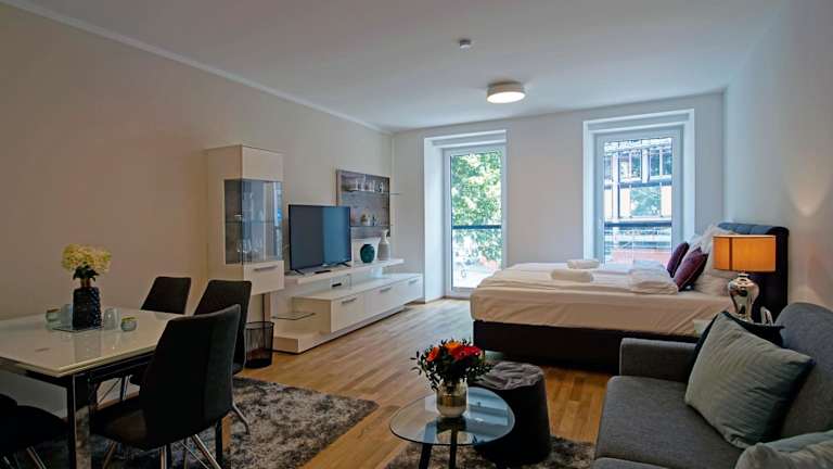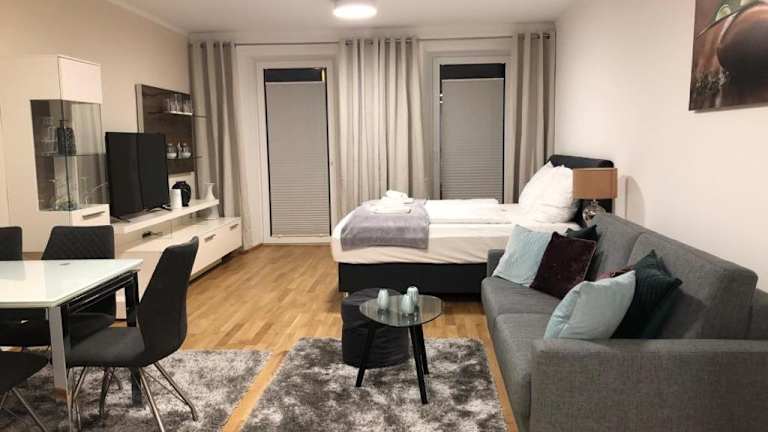 Das English Theater Apartment at Rathaus befindet sich in einem modernen Gebäude aus dem Jahr 2018 und bietet Übernachtungsmöglichkeiten mit Blick auf die Stadt. Die Unterkunft ist mit kostenlosem Wifi ausgestattet und bietet Gästen die Möglichkeit zur Autovermietung.