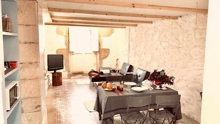 Die Ferienwohnung besteht aus einem Schlafzimmer, einem Wohnzimmer und einer voll ausgestatteten Küche, die unter anderem mit einem Kühlschrank und einer Kaffeemaschine eingerichtet ist. Sie verfügt über zwei Badezimmer, die mit einem Bidet und einer Dusche ausgestattet sind. Handtücher und Bettwäsche werden zur Verfügung gestellt.