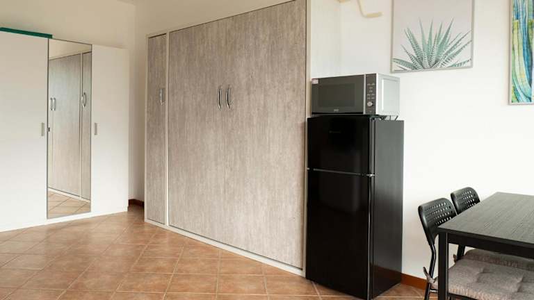 Das Studio ist mit Bettwäsche und Handtüchern ausgestattet. Eine voll ausgestattete Küchenzeile ermöglicht Selbstverpflegung. Zudem stehen Gartenmöbel zur Verfügung, damit die Gäste das schöne Wetter auf der Terrasse geniessen können.