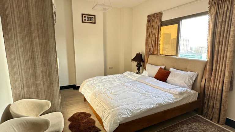 Die Unterkunft befindet sich im 17. Stock des Sharjah Towers an der Al Tawun Street. In der Nähe gibt es den Strand Al Mamzar Open Beach, welcher etwa 1,5 km entfernt ist. Das Einkaufszentrum Sahara Centre liegt in einer Entfernung von 1,7 km. Der Flughafen Dubai ist 9 km entfernt und das Sharjah Aquarium befindet sich 5 km von der Unterkunft entfernt.