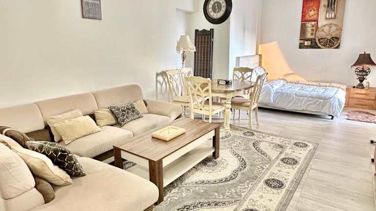 Das Apartment umfasst 1 Schlafzimmer, ein Wohnzimmer und eine voll ausgestattete Küche mit einem Kühlschrank und einer Kaffeemaschine. Zudem gibt es ein Badezimmer, welches mit einem Bidet und einer Dusche ausgestattet ist. Gegen Aufpreis können Handtücher und Bettwäsche bereitgestellt werden. Die gesamte Unterkunft ist Nichtraucherbereich.