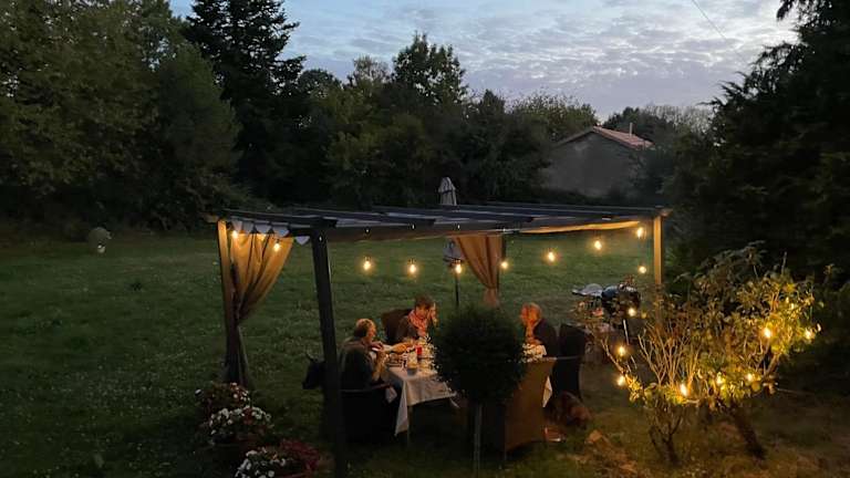 Gäste können im Aussenpool schwimmen, Velo fahren oder im Garten entspannen. Zudem wird Tischtennis angeboten.
