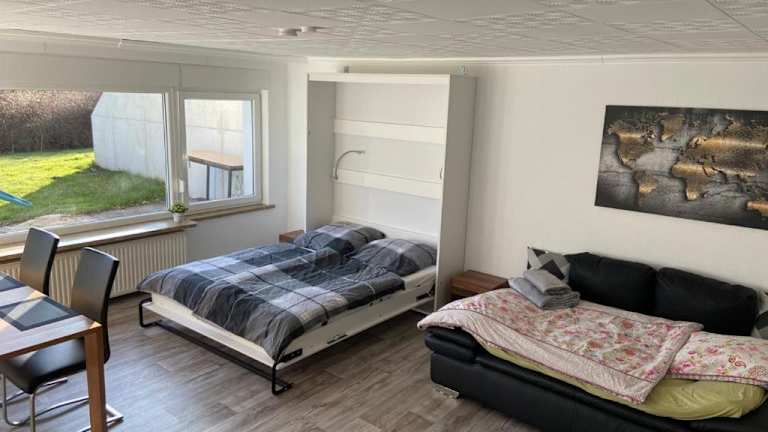 Die Ferienwohnung besteht aus 1 separaten Schlafzimmer, einer voll ausgestatteten Küche mit Kühlschrank und Geschirrspüler sowie 1 Badezimmer. Für zusätzlichen Komfort können Handtücher und Bettwäsche gegen Aufpreis bereitgestellt werden.