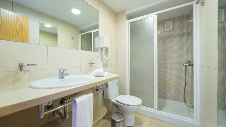 Appartement mit 35 m2 Privater Balkon in jedem Appartement Mit Blick auf den Pool / Garten Wohnzimmer mit Sofa und Beistelltisch 32″ Satellitenfernseher Bad mit Dusche Mobilierte Terrasse Safe (gegen Gebühr) WIFI – 4G Mobile gegen Gebühr Haartrockner Das zweites Kind bekommt ein Extrabett.