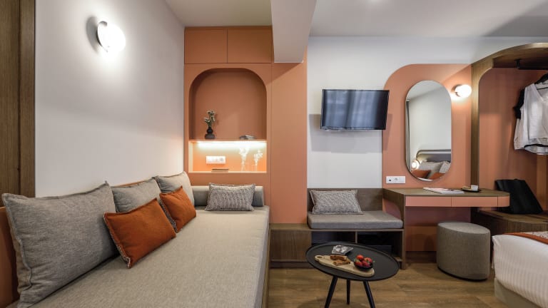 Epineio Comfort Living bietet ein à la carte oder kontinentales Frühstück für seine Gäste.