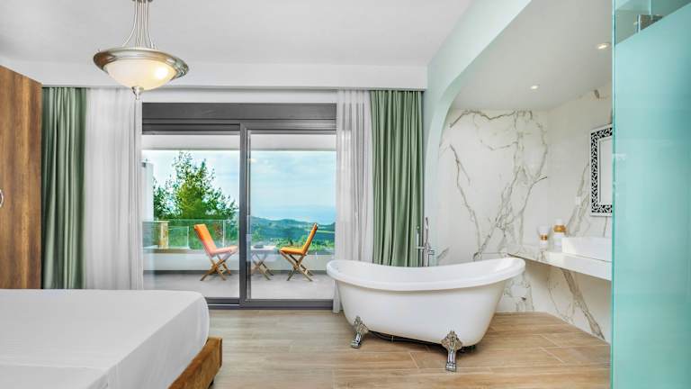 Die Zimmer der Epta Villas Luxury Redefined sind modern eingerichtet und verfügen über eine Klimaanlage sowie kostenloses Wifi. Jedes Zimmer bietet einen Sitzbereich, einen Flachbild-TV und eine voll ausgestattete Küche mit Kühlschrank, Ofen und Herdplatte. Zudem ist ein eigenes Badezimmer mit Dusche und Haartrockner vorhanden.