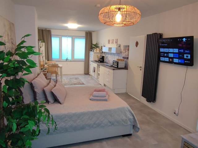 Die Ferienwohnung verfügt über 1 Schlafzimmer, eine Küchenzeile mit Kühlschrank und Geschirrspüler sowie 1 Badezimmer mit Dusche und kostenlosen Pflegeprodukten. Handtücher und Bettwäsche werden bereitgestellt, zudem ist eine Waschmaschine vorhanden.