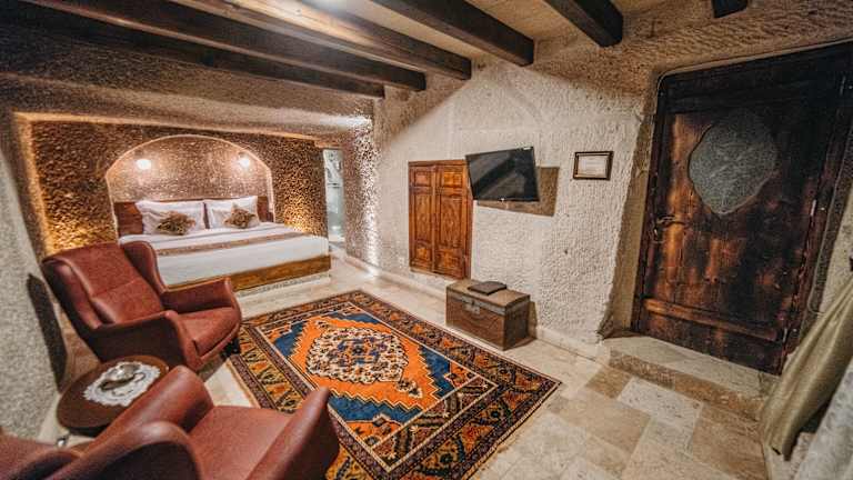Das Erenbey Cave Hotel ist ein familiengeführtes Haus, das traditionelle Architektur und moderne Annehmlichkeiten vereint. Es bietet Höhlenzimmer mit Blick auf die malerische Region Kappadokien. Eine Dachterrasse sowie eine heimelige Terrasse laden zum Entspannen ein.