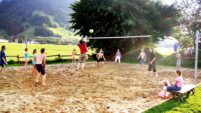 Auf unserer eigenen Spiel- und Sportwiese bieten wir unseren Gästen 365 Tage Abenteuer + Sport + Spaß mit unserem Beachvolley-, Fußball-, Basketball-, Lagerfeuer-, Grill und Kinderspielplatz, Outdoor T-Tennis, Hartplatz und Kletterwand. Und wer Lust hat kann im neuen Streichelzoo unsere Ponys, Zwergziegen, Hängebauchschweine, Laufenten und Hasen füttern, streicheln und betreuen.