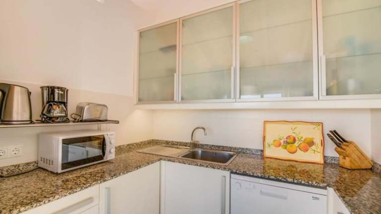 Das Es Port penthouse ist mit zwei Schlafzimmern und zwei Badezimmern ausgestattet. Zur weiteren Ausstattung gehören Bettwäsche, Handtücher, ein TV mit Satellitenkanälen sowie eine voll ausgestattete Küche. Eine Terrasse mit Meerblick sorgt für zusätzlichen Komfort.