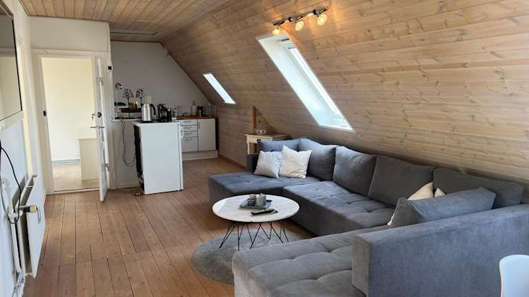 Das Penthouse apartment in Esbjerg townhouse bietet eine gemütliche Übernachtungsmöglichkeit in einer charmanten Ferienwohnung, die in einem Gebäude aus dem Jahr 1937 untergebracht ist. Die Unterkunft ist von einem Garten umgeben und stellt eine Gemeinschaftsküche sowie eine Gemeinschaftslounge zur Verfügung.