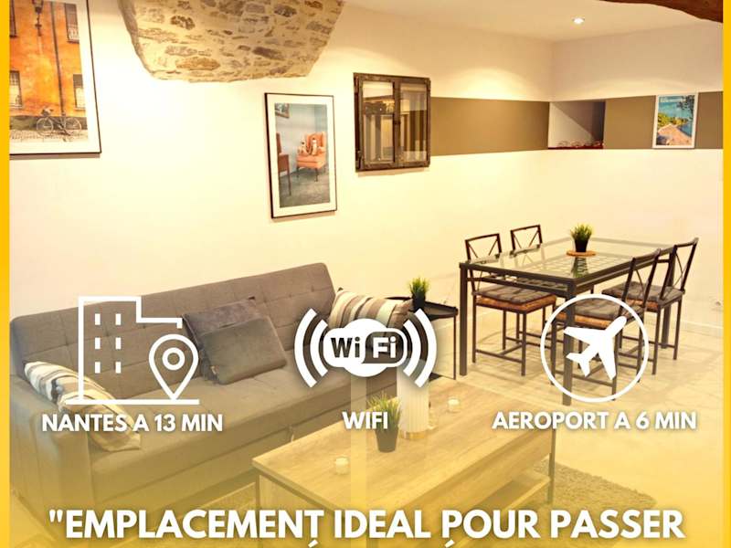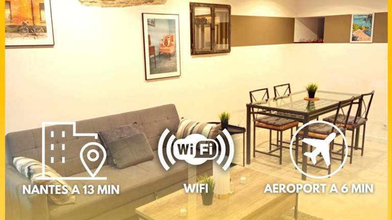 Das Escale - Maison - Nantes aéroport ist ein Ferienhaus, das in einem ruhigen Umfeld gelegen ist. Es bietet praktische Annehmlichkeiten wie kostenloses WLAN, eine Terrasse und einen Parkplatz vor Ort. Das Haus wird von einem privaten Gastgeber geführt und es gelten spezifische Hausregeln, die unter anderem das Feiern von Junggesellenabschieden verbieten.
