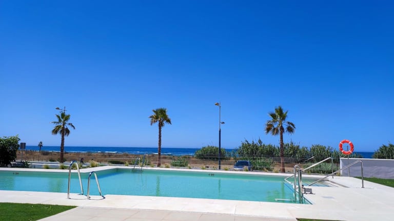Espectacular Apartamento en primera linea de playa ist eine geräumige Ferienwohnung, die direkt am Strand gelegen ist. Sie bietet Übernachtungsmöglichkeiten mit einem eigenen Pool, einem Garten und einer Terrasse.