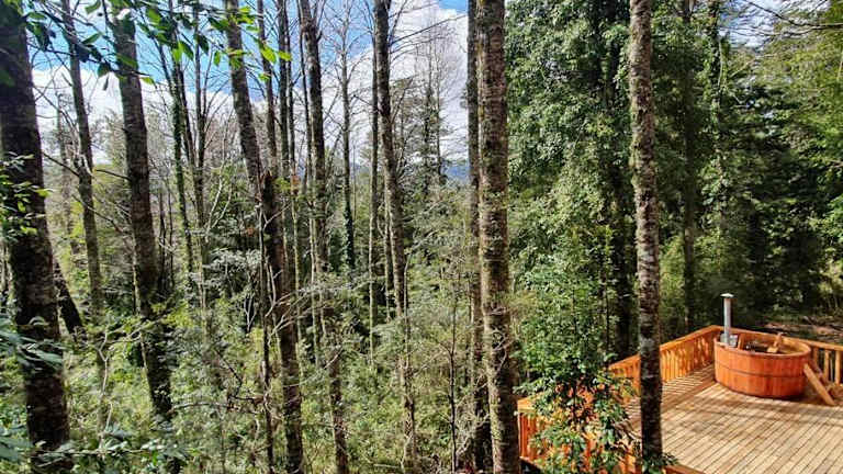 Die Unterkunft befindet sich in Huilo-Huilo, etwa 3,5 km von Puerto Fuy entfernt. Die Umgebung zeichnet sich durch eine idyllische Gartenlandschaft aus und bietet Zugang zu Thermalquellen in Coñaripe, die sich 38 km entfernt befinden.