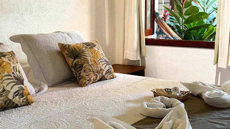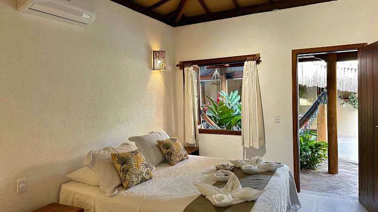 Die klimatisierten Zimmer im Estalagem D'Ajuda verfügen über einen TV, eine Minibar und ein Bad. Teilweise bieten die Zimmer einen eigenen Balkon mit Hängematte. Bettwäsche und Handtücher werden bereitgestellt. Die Zimmer sind schlicht gestaltet und gewährleisten eine angenehme Bequemlichkeit.