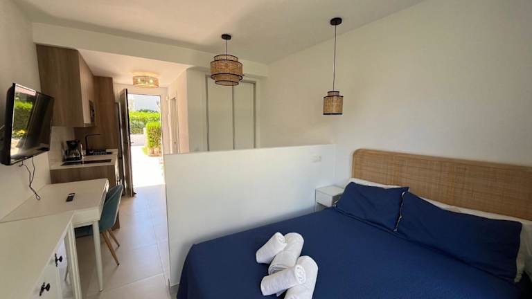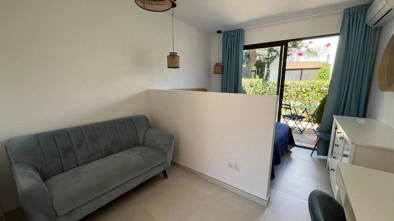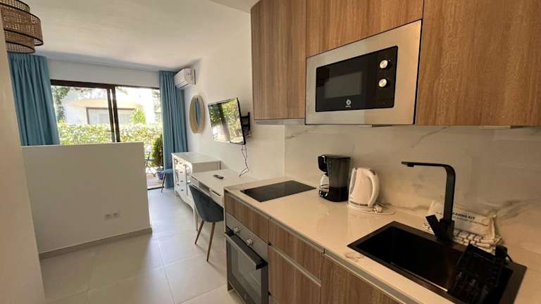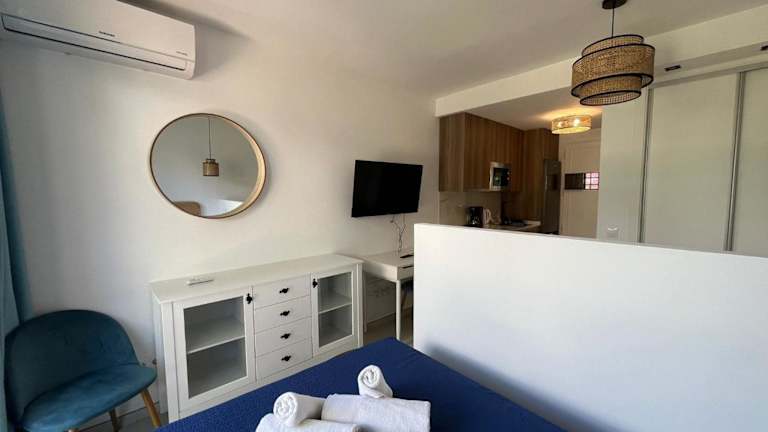 Estepona - Playa - Estudio con terraza Pa8 bietet Übernachtungsmöglichkeiten in einer klimatisierten Ferienwohnung. Die Unterkunft ist mit einem TV ausgestattet. Die Wohnung ist eine Nichtraucherunterkunft, in der alle öffentlichen und privaten Bereiche rauchfrei sind.