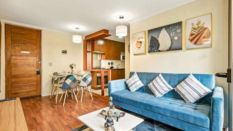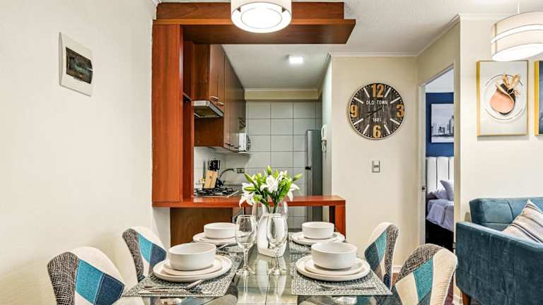 Die Unterkunft Estreno Barrio Turístico - Piscina liegt im Zentrum von Santiago und bietet eine gute Anbindung an Sehenswürdigkeiten wie den Cerro Santa Lucía, das Chilenische Museum für präkolumbische Kunst und La Chascona. Der nächstgelegene Flughafen Santiago de Chile ist 17 km entfernt.