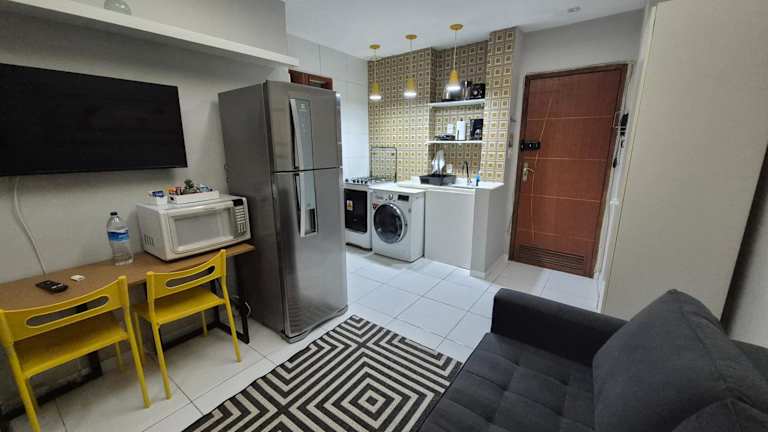 Estúdio 3 min Praia de Copacabana bietet eine heimelige Ferienwohnung mit kostenlosem Wifi und Waschmaschine.