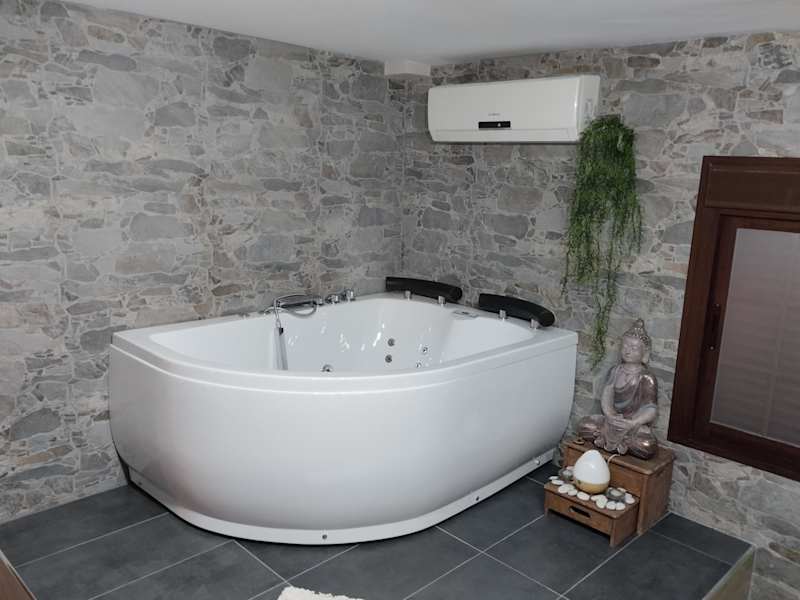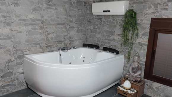 Die Ferienwohnung besteht aus einem Schlafzimmer und einem Wohnzimmer. Sie ist mit einer voll ausgestatteten Küche versehen, die über einen Kühlschrank und eine Kaffeemaschine verfügt. Zudem beinhaltet die Unterkunft ein Badezimmer mit einer Dusche und einem Whirlpool. Handtücher und Bettwäsche werden zur Verfügung gestellt.