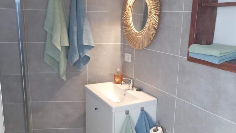 Die Ferienwohnung ist ausgestattet mit 1 Schlafzimmer, 1 Badezimmer, Bettwäsche, Handtüchern, einem Flachbild-TV mit Kabelkanälen, einem Essbereich sowie einer voll ausgestatteten Küche. Zusätzlich steht eine Terrasse mit Meerblick zur Verfügung.