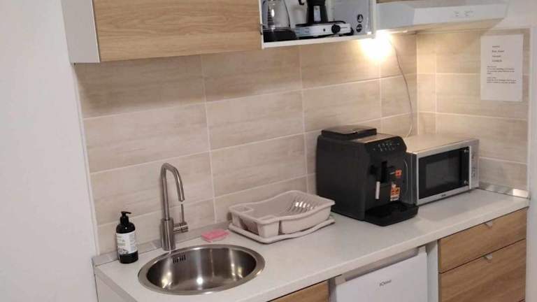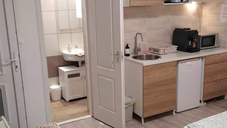 Die Ferienwohnung besteht aus einem Schlafzimmer und ist mit einer voll ausgestatteten Küchenzeile ausgestattet, die einen Kühlschrank und eine Mikrowelle beinhaltet. Das Badezimmer verfügt über eine Dusche und einen Haartrockner. Die Unterkunft bietet zudem Nichtraucherzimmer und sorgt für das Wohlbefinden der Gäste.