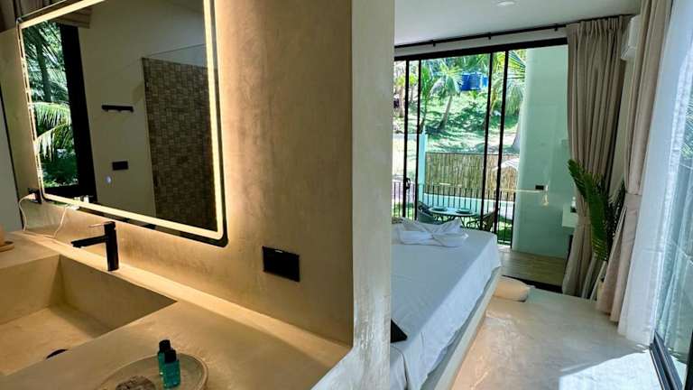 Die Unterkunft Eterno Villas befindet sich in Salad Beach, nur 200 m entfernt vom schönen Salad Beach. Der beliebte Strand Haad Gruad ist in 1,1 km erreichbar. Weitere Strände wie Haad Tian liegen 1,2 km entfernt und die Insel Ko Ma befindet sich 3,5 km von der Unterkunft entfernt. Der nächstgelegene Flughafen, der Internationale Flughafen Ko Samui, ist 70 km entfernt.