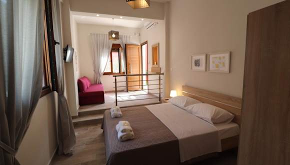 Die Ethra luxury studios bieten einen Garten und klimatisierte Wohneinheiten. Jede Wohneinheit ist mit einem Balkon ausgestattet und bietet kostenloses Wifi. Die Studios sind in einem gepflegten Zustand und über Fliesenböden sowie ein eigenes Badezimmer und eine ausgestattete Küche ausgestattet. Es handelt sich um eine Nichtraucherunterkunft, in der keine Junggesellenabschiede oder ähnliche Feiern erlaubt sind.