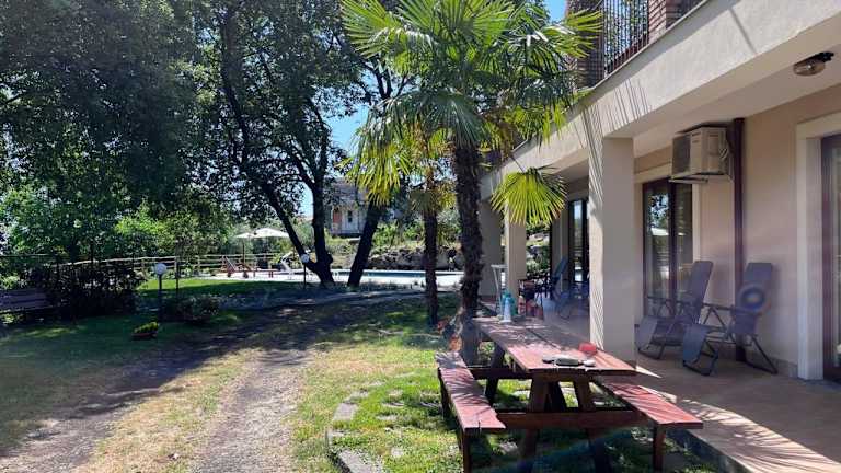Etna tra le Querce bietet ein Ferienhaus mit saisonalem Aussenpool und Terrasse. Diese Unterkunft ist von einem Garten umgeben und verfügt über einen eigenen Grillplatz. Kostenfreies WLAN und ein privater Parkplatz stehen den Gästen zur Verfügung.