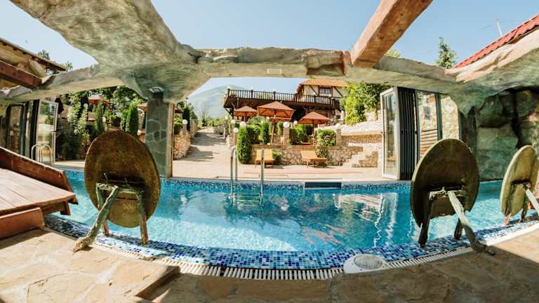 Das Hotel Etno Centar Balasevic bietet Ihnen eine Vielzahl von Freizeiteinrichtungen im Freien. Entspannen Sie am Außen- oder Innenpool und genießen Sie die Sonne auf der Sonnenterrasse. Spielen Sie eine Partie Tennis auf dem hoteleigenen Tennisplatz. Der Spa- und Wellnessbereich bietet Saunen und einen Whirlpool für zusätzliche Entspannung. Ein besonderes Highlight ist der Wasserpark im Poolbereich, der für Spaß und Unterhaltung sorgt. Das freundliche Personal steht Ihnen rund um die Uhr an der Rezeption zur Verfügung und hilft Ihnen gerne bei Fragen oder Anliegen.