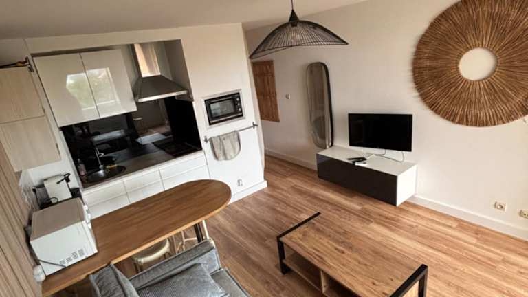 Die Ferienwohnung verfügt über ein Schlafzimmer, eine Küche mit Kühlschrank und Ofen sowie einen Flachbild-TV. Zudem gibt es einen Sitzbereich und ein Badezimmer mit Dusche.