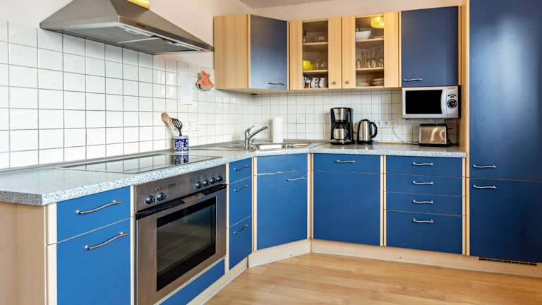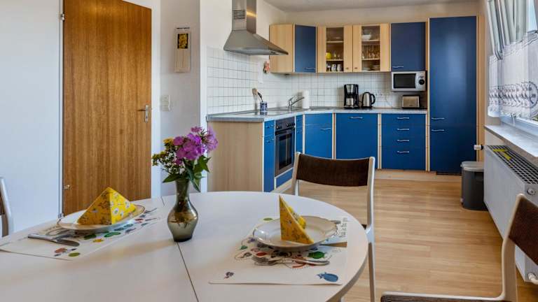 Die Ferienwohnung beinhaltet zwei Schlafzimmer sowie ein Badezimmer mit Dusche. Eine gut ausgestattete Küche ist mit Kühlschrank und Geschirrspüler ausgerüstet. Ein TV mit Kabelkanälen ist ebenfalls vorhanden. Handtücher und Bettwäsche werden bereitgestellt.