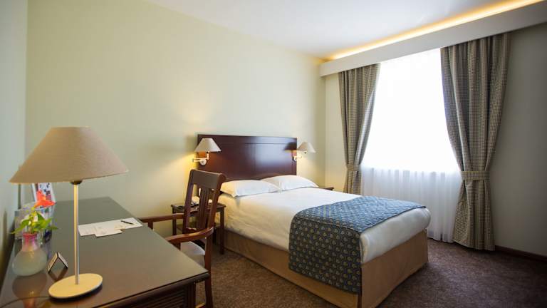 Die Zimmer sind mit Teppichböden ausgestattet und bieten Klimaanlage, Kühlschrank, Minibar und kostenfreies Wifi. Es befinden sich auch ein TV-Gerät und ein Telefon im Zimmer. Badezimmer verfügen über eine Dusche, einen Haartrockner sowie Pflegeprodukte. Bademäntel und Hausschuhe sind auf Anfrage erhältlich. Es sind auch rollstuhlgerechte Zimmer buchbar.