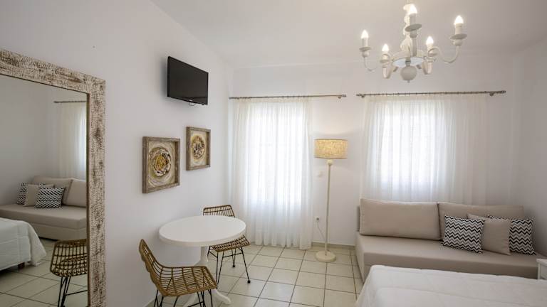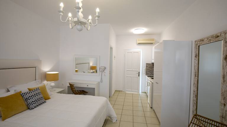 Die Zimmer und Studios im Eutuxia sind komfortabel und modern ausgestattet, ideal für erholsame Ferien. Die meisten Unterkünfte bieten Meerblick und sind mit einem eigenen Bad ausgestattet. Zusätzlich gibt es auch einige Unterkünfte mit einer gut ausgestatteten Küchenzeile für Selbstversorger. Es stehen schallisolierte Zimmer zur Verfügung, die für eine ruhige Atmosphäre sorgen.