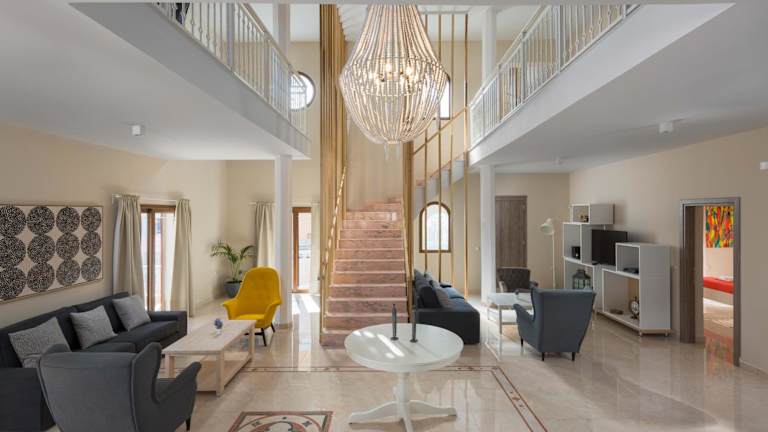Die Schlafzimmer der Evelyn Villa sind klimatisiert und bieten Platz für Ferien mit der Familie oder Freunden. Es gibt 3 Badezimmer, die jeweils eine Dusche und einen Whirlpool beinhalten. Handtücher und Bettwäsche werden gestellt.